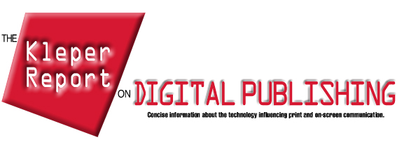 Past issues (more than 60 days old) of The Kleper Report on Digital Publishing are available on the Web at: http://www.printerport.com/kdp/. Comments and inquiries should be directed to: The Kleper Report on Digital Publishing, POB 20013, Rochester, NY 14623, USA. E-mail: kdp@printerport.com.
