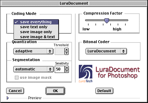 pressed, and in what form. (Screen capture courtesy of LuraTech, Inc.)